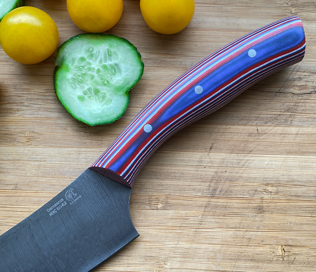 Teräs: Damaskoksen terästerä, (HVG, U10, ShH15), 800 kerrosta