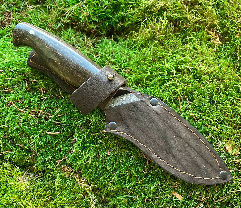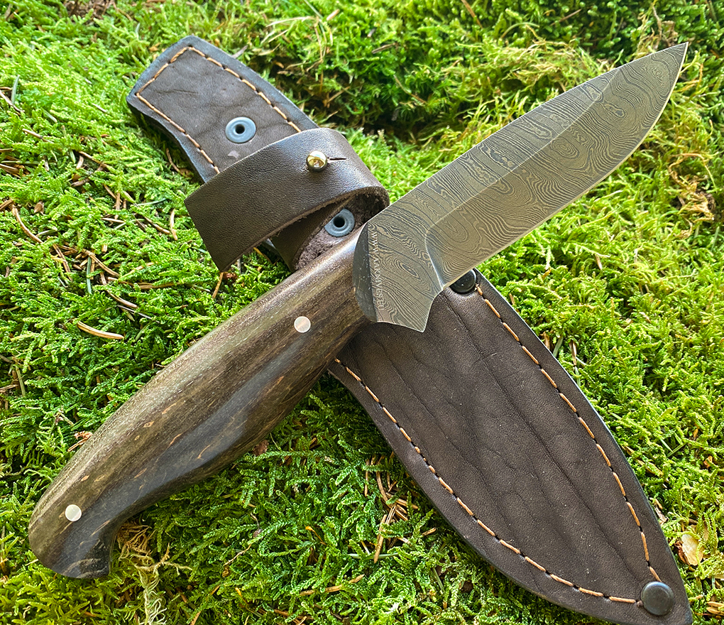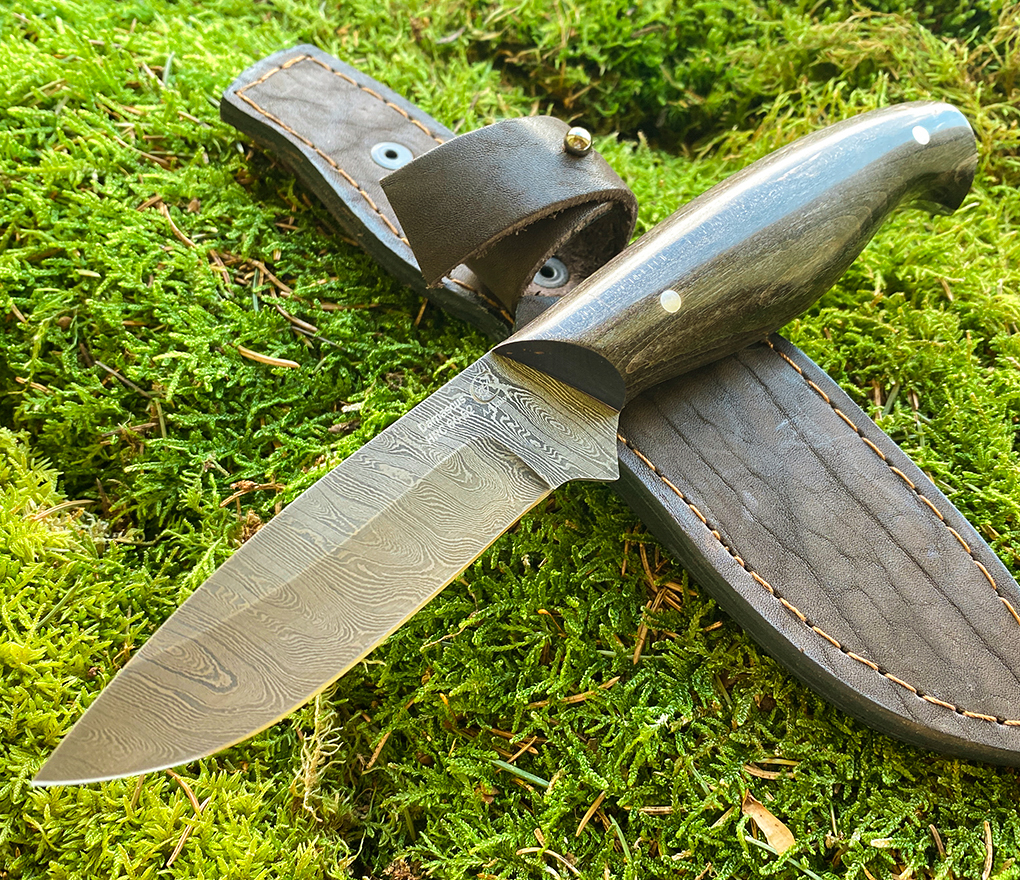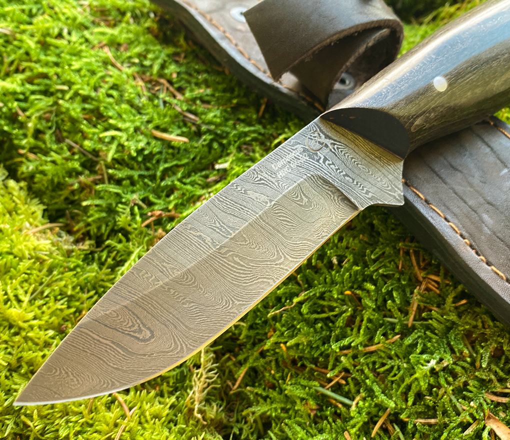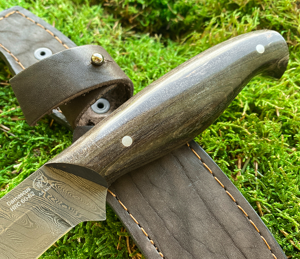 Vahva metsästysveitsi, josta on hyötyä sekä lihan esikäsittelyssä että myöhemmässä leikkaamisessa. Sen terä on käsin taottu Damaskusteräksestä, joka tekee siitä erittäin kovan mutta joustavan ja kestävän.