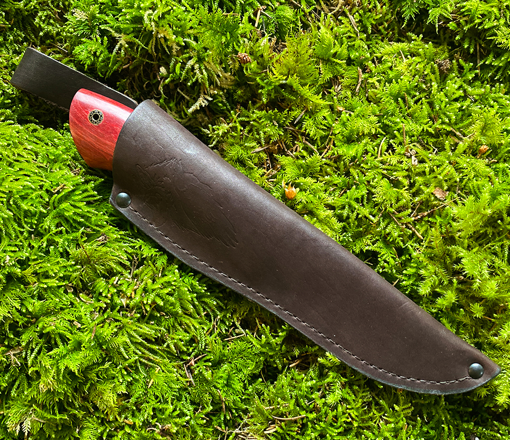 Vahva metsästysveitsi, josta on hyötyä sekä lihan esikäsittelyssä että myöhemmässä leikkaamisessa. Sen terä on käsin taottu Damaskusteräksestä, joka tekee siitä erittäin kovan mutta joustavan ja kestävän.
