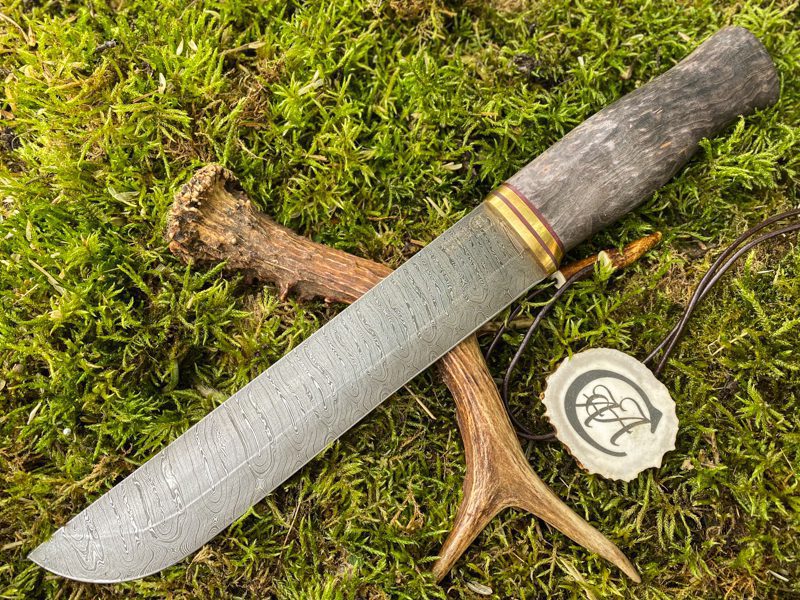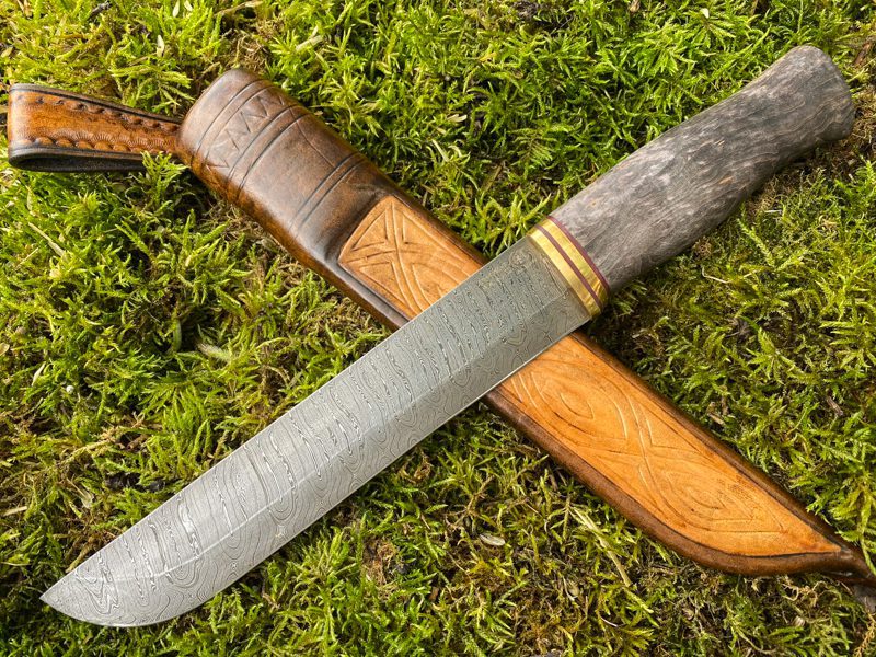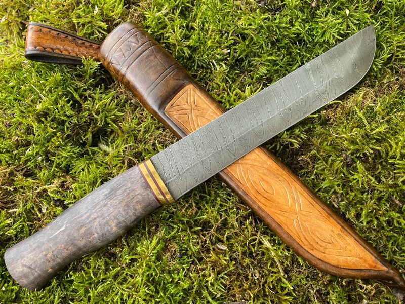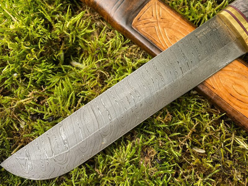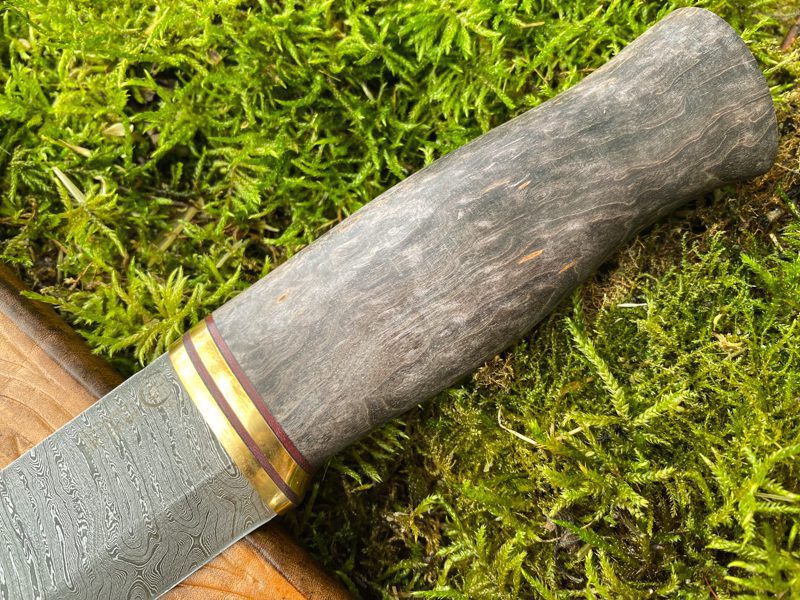 Plienas: Damasko plieno medžioklinis peilis, (HVG, U10, ShH15), 450 sluoksnių