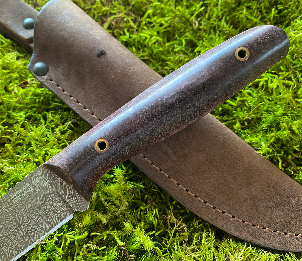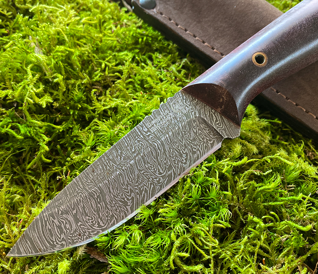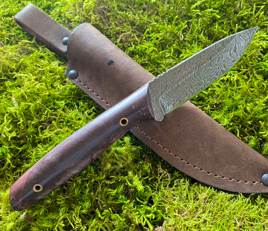 Крепкий охотничий нож, который пригодится как для предварительной обработки, так и для последующей разделки мяса. Его лезвие вручную выковано из дамасской стали, что делает его очень твердым, но при этом эластичным и прочным.
