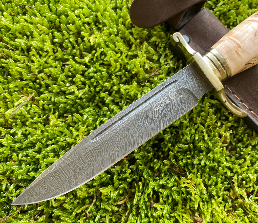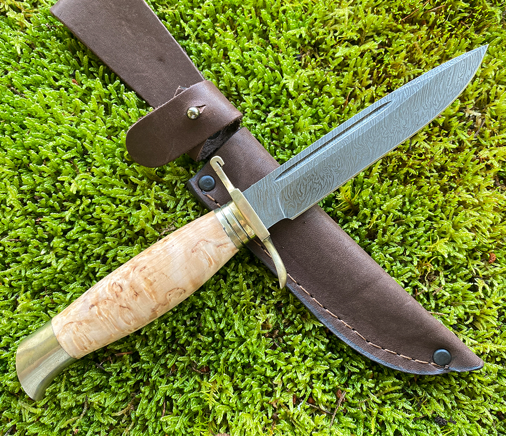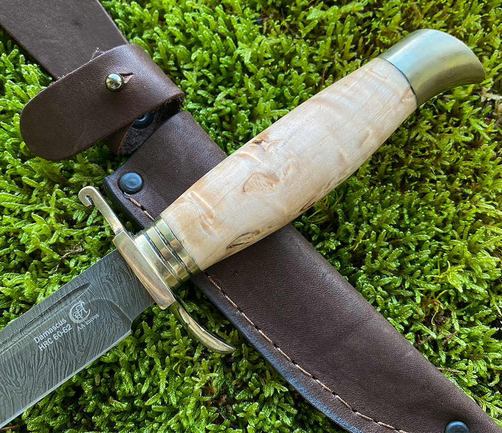Knife ”FINKA” (Damascus steel), stabilized Karelia birch