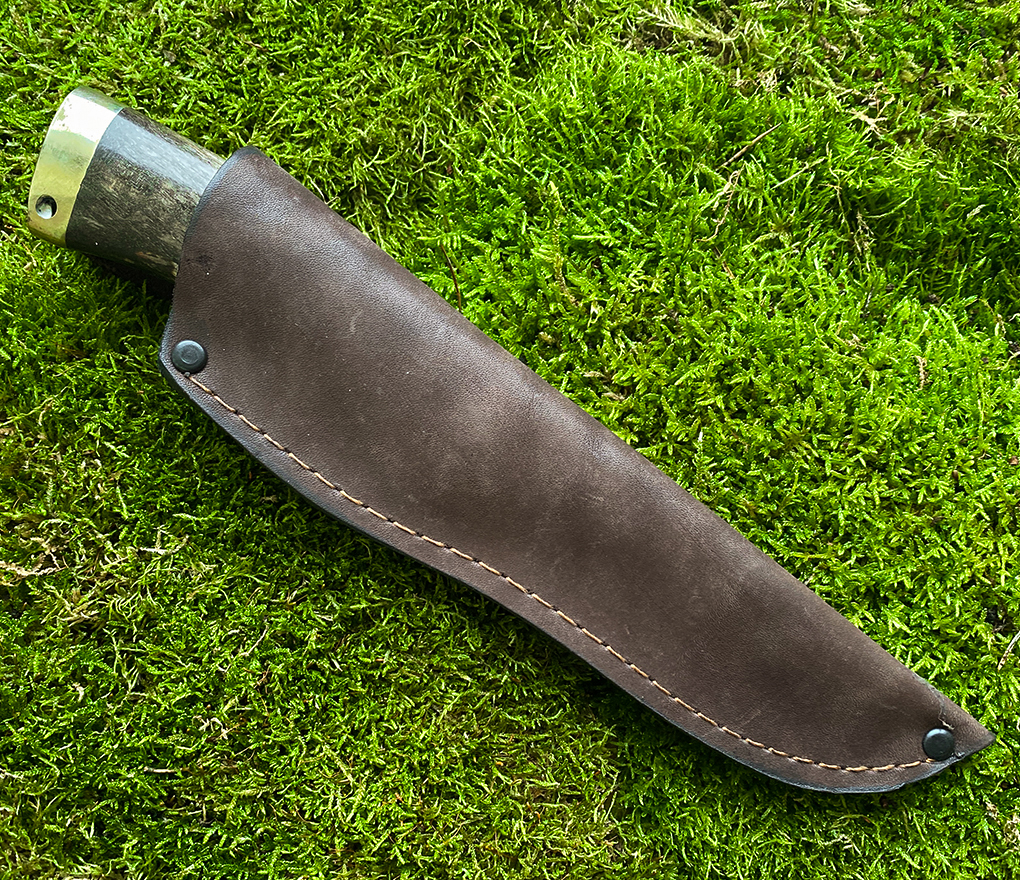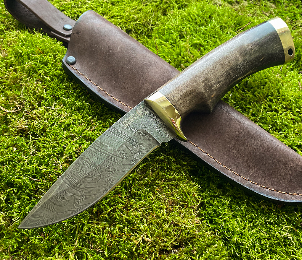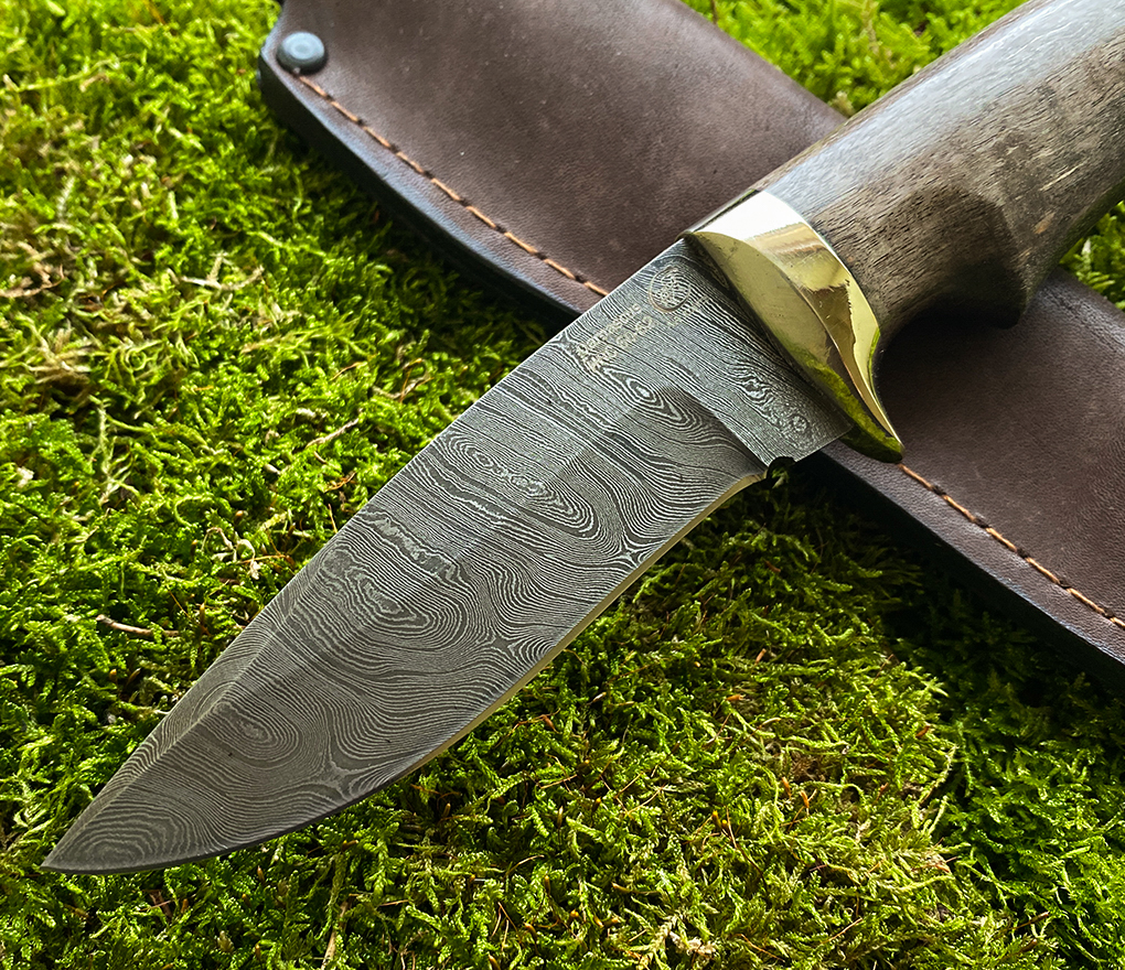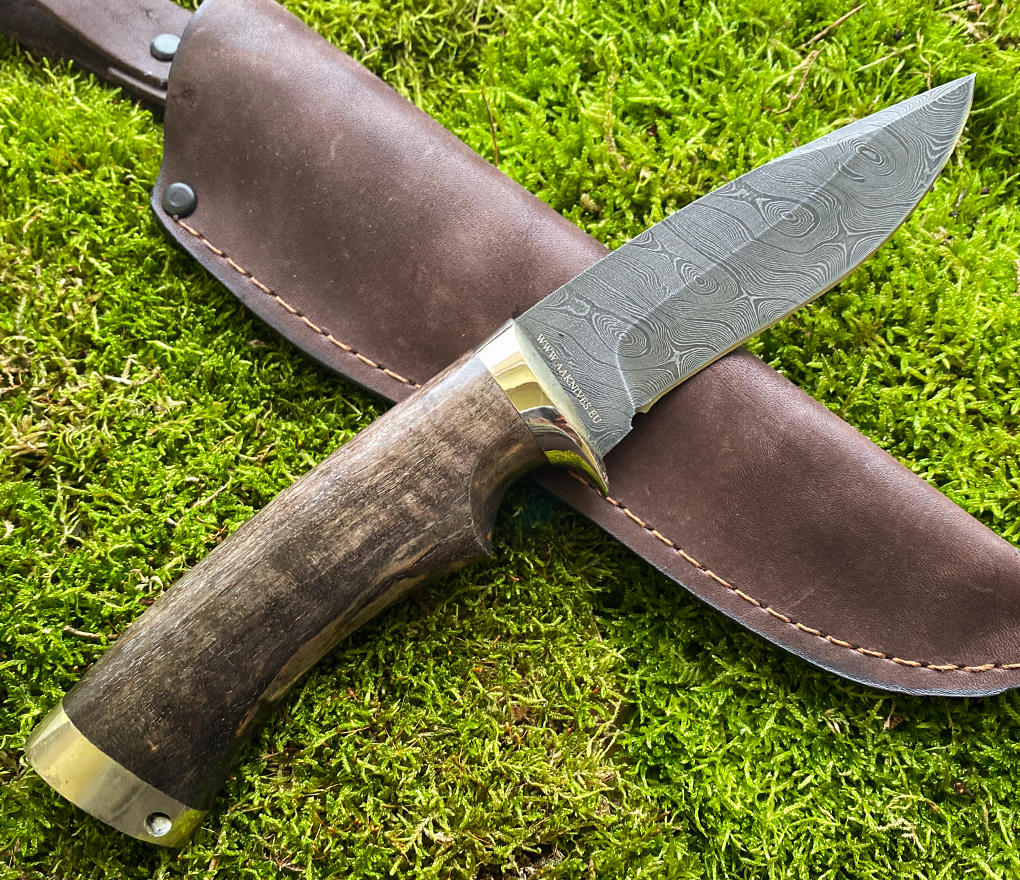 En stark jaktkniv som kommer att vara användbar för både förbehandling och senare skärning av köttet. Bladet är handsmidda av Damaskus stål, vilket gör det mycket hårt men ändå elastiskt och hållbart.